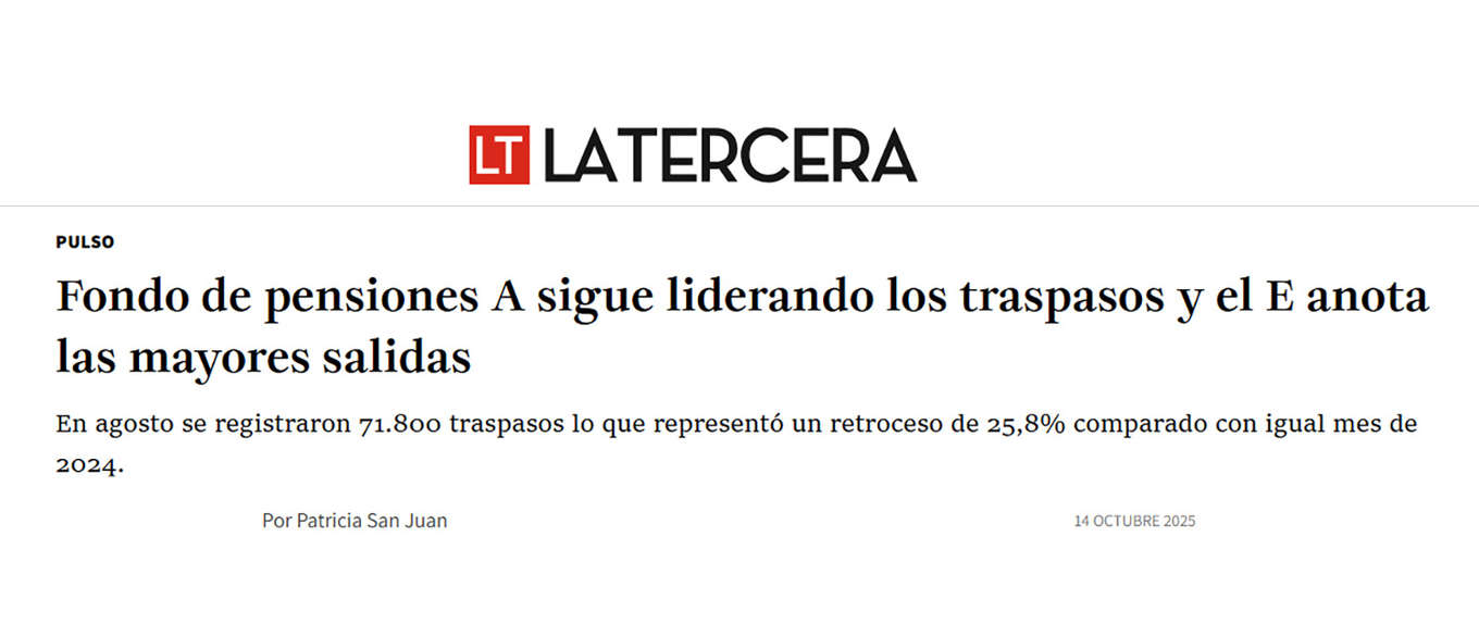La Tercera Pulso: Fondo de pensiones A sigue liderando los traspasos y el E anota las mayores salidas