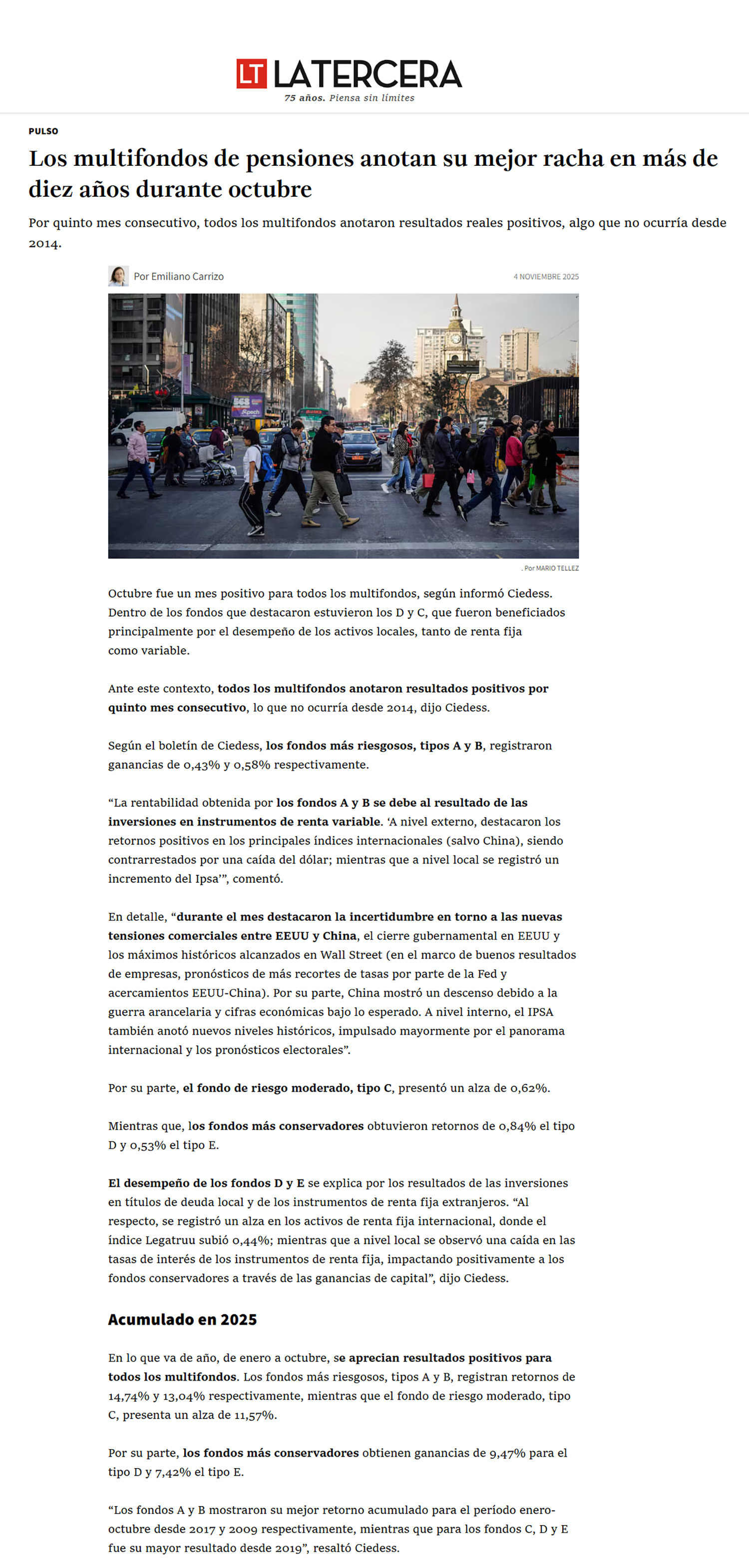 La Tercera Pulso: Los multifondos de pensiones anotan su mejor racha en más de diez años durante octubre