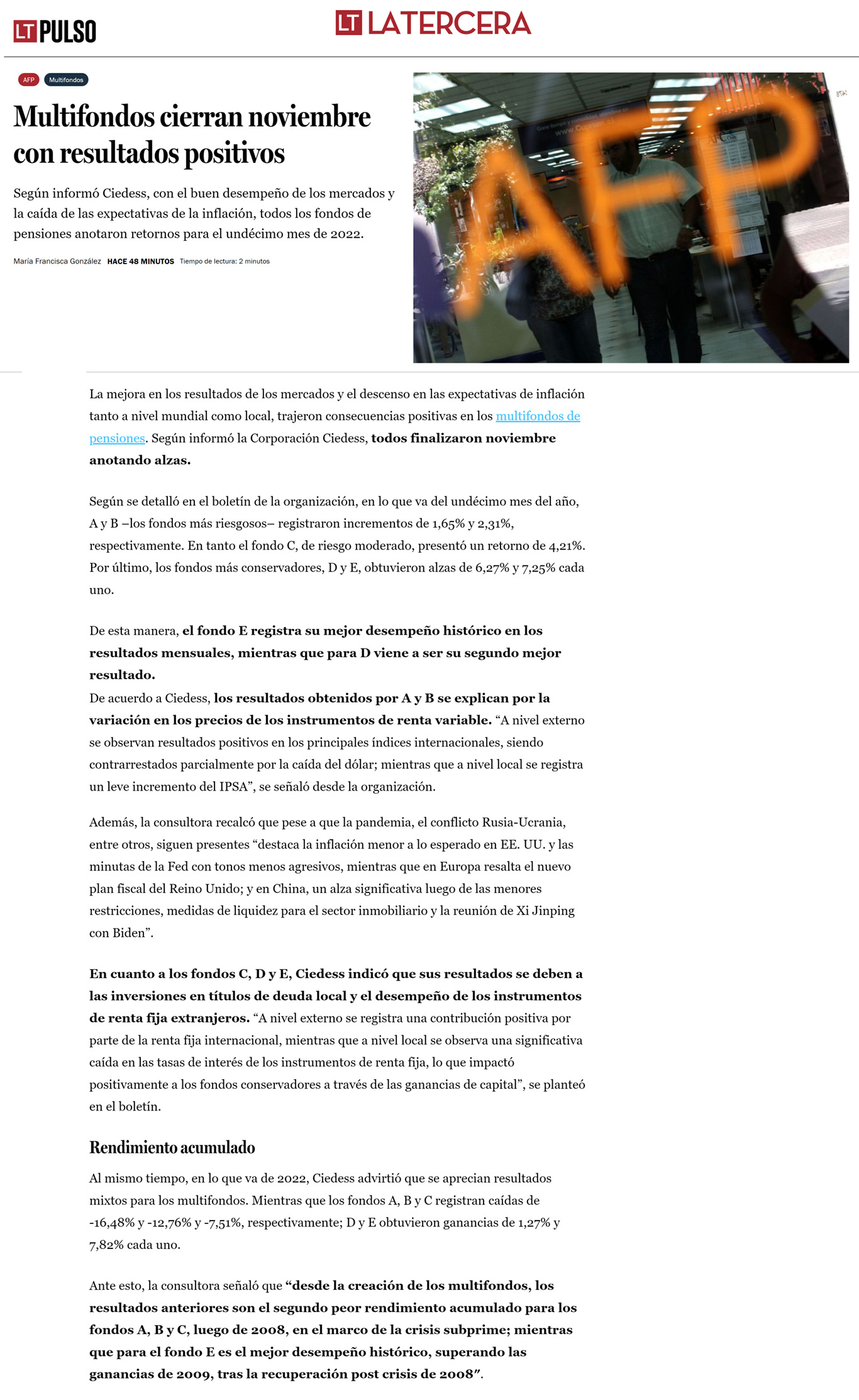 Ciedess en La Tercera-Pulso: Multifondos cierran noviembre con resultados positivos