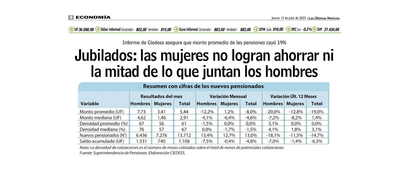 Ciedess en LUN: Jubilados: las mujeres no logran ahorrar ni la mitad de lo que juntan los hombres