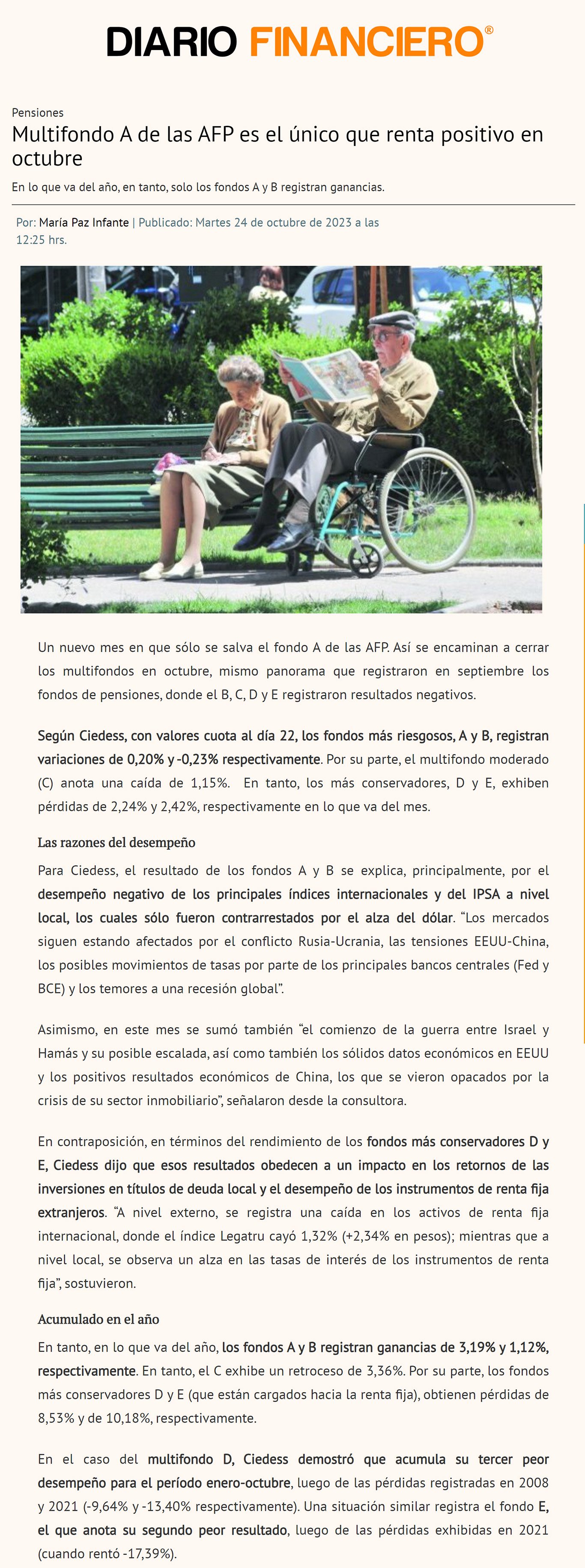 Ciedess en DF: Multifondo A de las AFP es el único que renta positivo en octubre