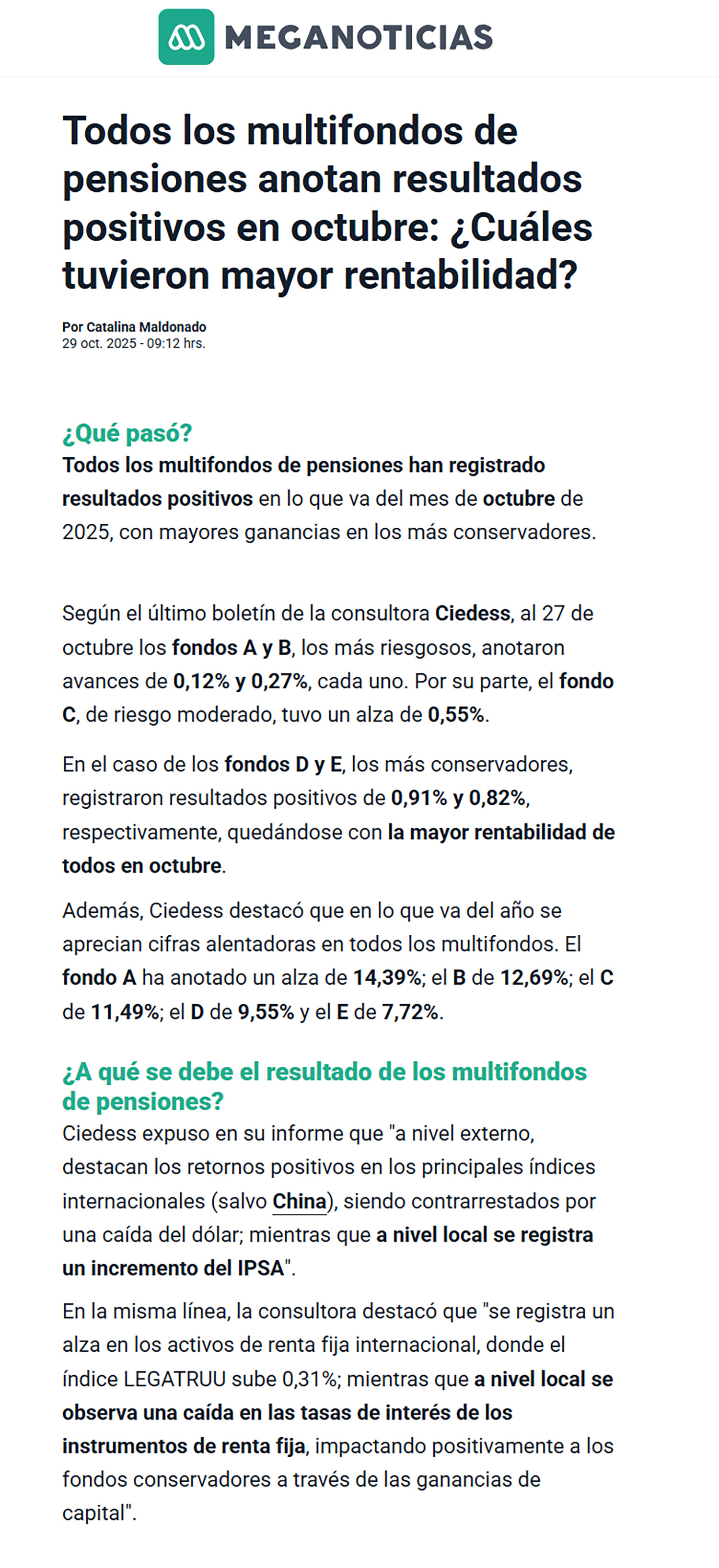 Meganoticias: Todos los multifondos de pensiones anotan resultados positivos en octubre: ¿Cuáles tuvieron mayor rentabilidad?