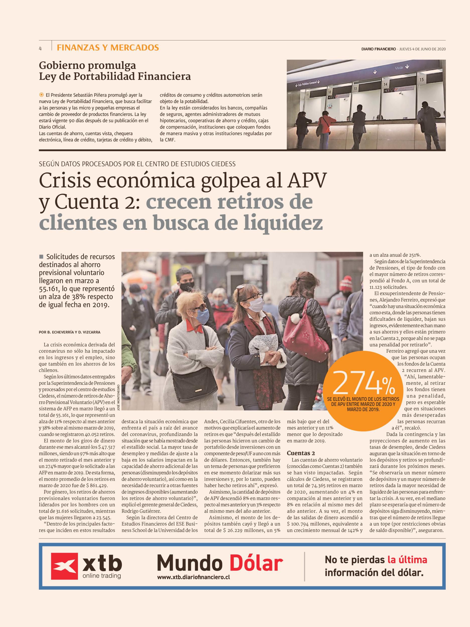 Ciedess en DF: Crisis económica golpea al APV y Cuenta 2: crecen retiros de clientes en busca de liquidez