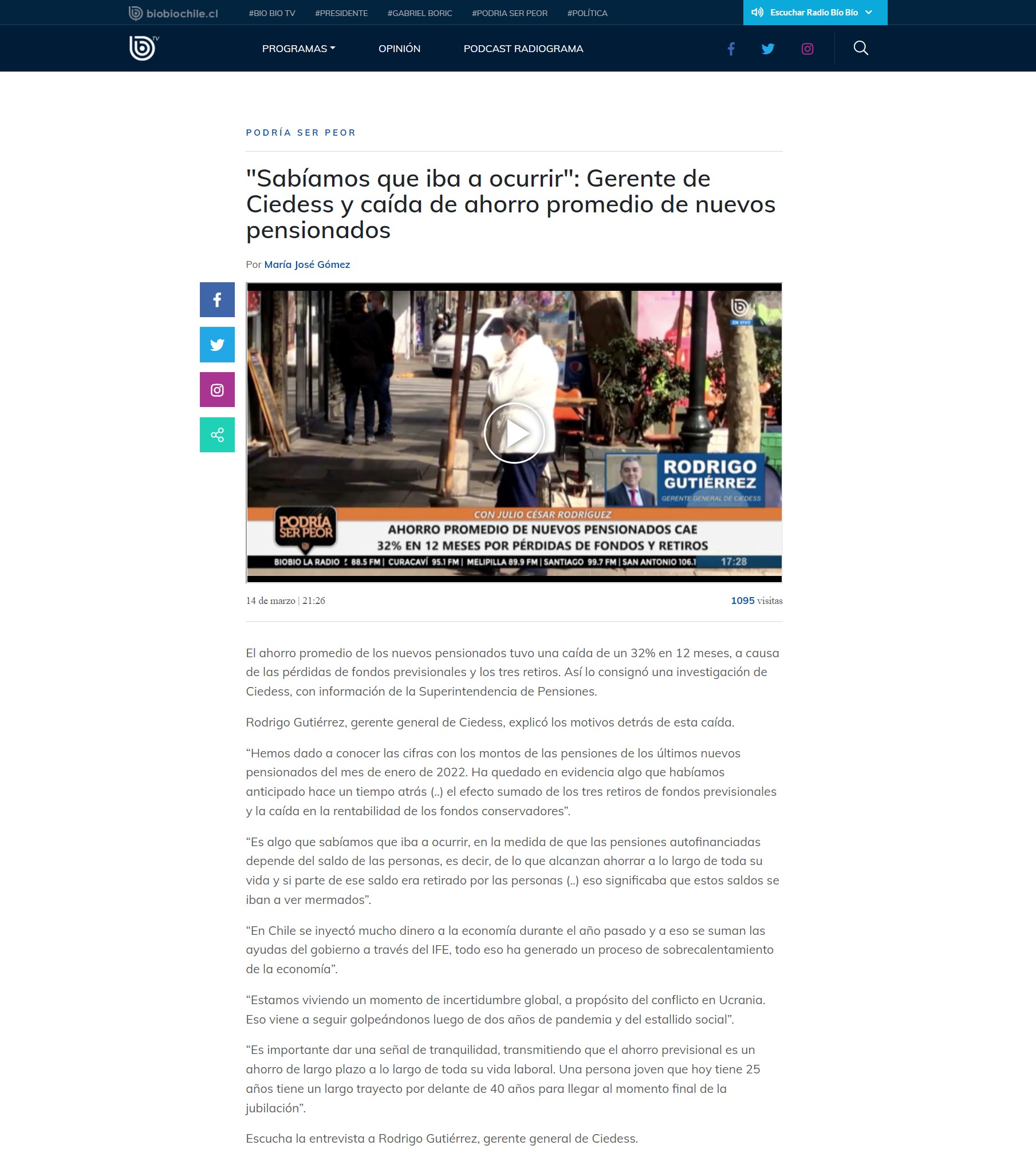Ciedess en "Podría ser peor": "Sabíamos que iba a ocurrir": Gerente de Ciedess y caída de ahorro promedio de nuevos pensionados
